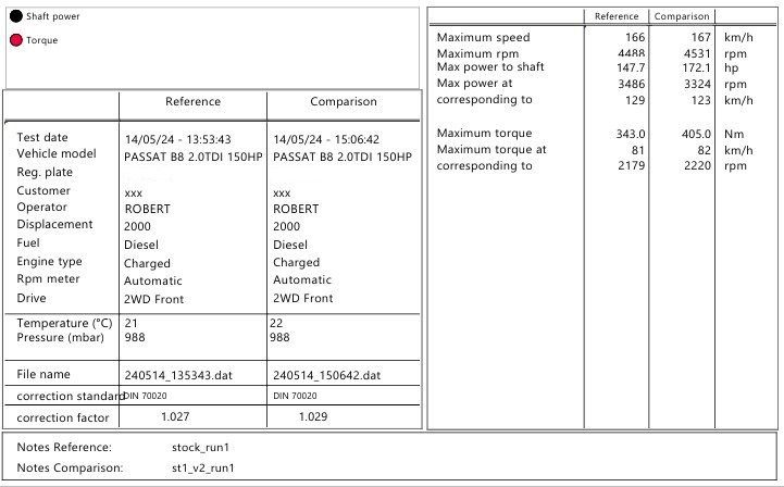 Wynik chip tuningu VW Passat B8 2.0 TDI