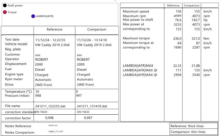Wynik chip tuningu Volkswagen Caddy 2.0TDI 2019r